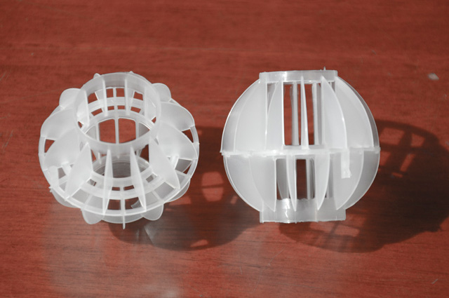 多面空心球中間鏤空結(jié)構(gòu)形成空隙大,不易被阻塞的特性。這種結(jié)構(gòu)在空氣洗滌、廢氣吸收、灰塵過(guò)濾等廢氣處理工程方面應(yīng)用,具有處理風(fēng)量大、阻力小的特點(diǎn)。由于多面空心球的空隙中有較高的滯液量,可使塔內(nèi)液體停留時(shí)間長(zhǎng),從而增加了氣體與液體的接觸面積和接觸時(shí)間,便廢氣得到充分吸收處理。